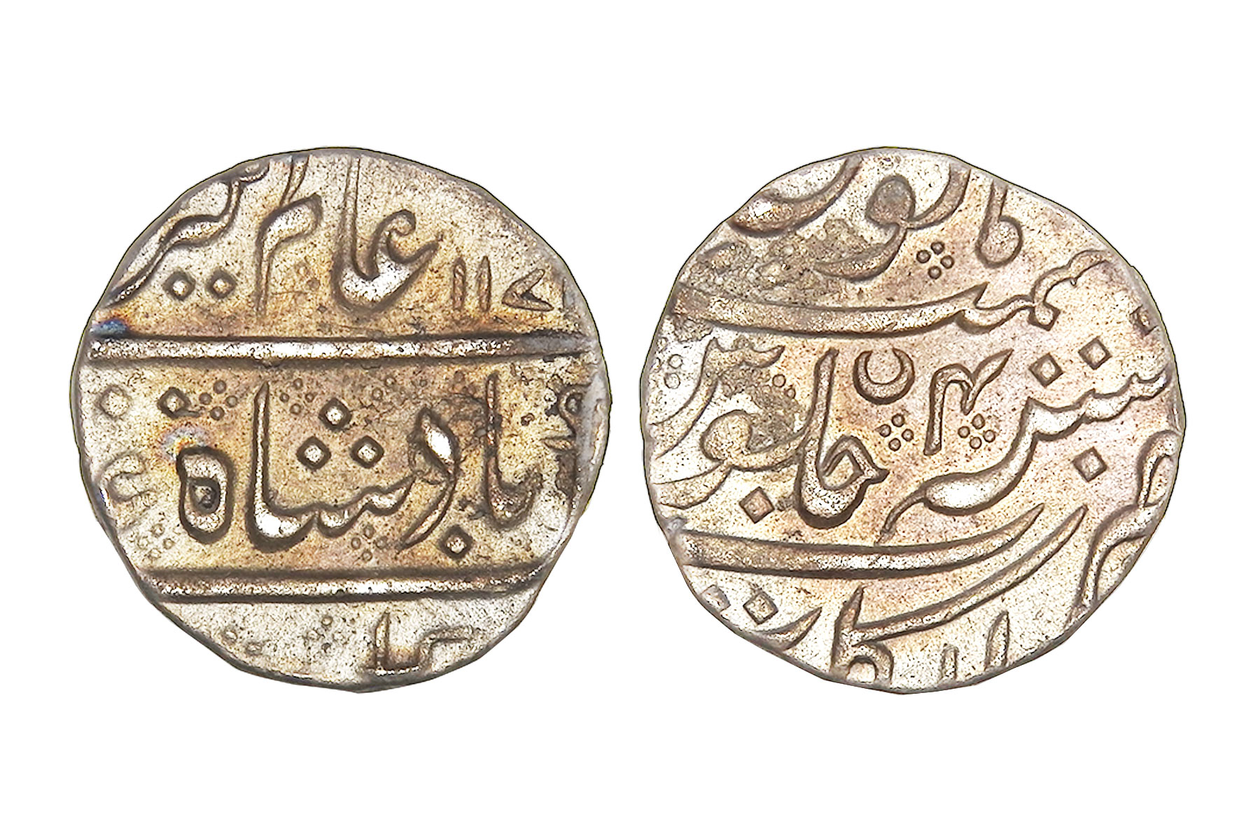 French India, In the name of Mughal king- Alamgir II, Silver Rupee, 11.30grms, AH1171/RY04, Minted at Arkat, Extra Fine+, Rare with date visible