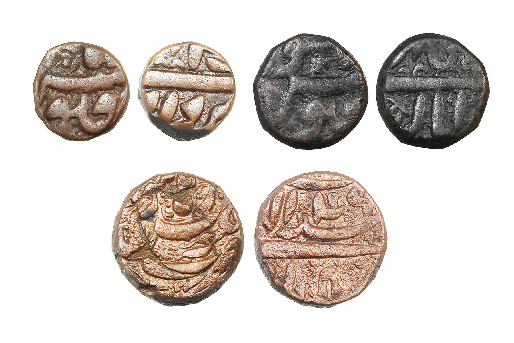 Mughal Empire, Akbar(c. 1556-1605CE), 3 Coins, Copper Dam, 1/2 Dam, 1/4 Dam, 20.70grms,9.40grms & 4.90grms, Minted at Balapur, 1/4 Dam is unique as both obverse and reverse has the mint mentioned, Very Fine+, Very Rare. Balapur is associated with Akbar’s Deccan campaigns during the struggle against the Nizam Shahi dynasty of Ahmadnagar and allied Deccan powers. The mint functioned in the context of Mughal military operations aimed at securing Berar and the eastern Deccan. Coins of Akbar from Balapur reflect imperial assertion in a contested frontier zone during active warfare.