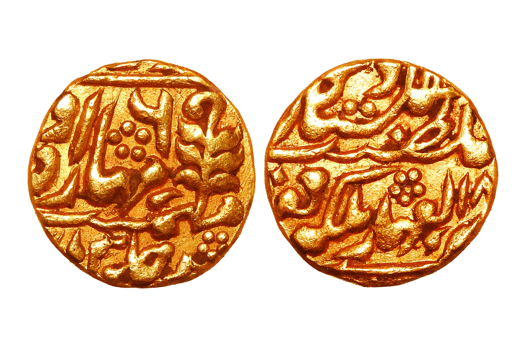 Jodhpur State, Umaid Singh(c. 1918-1947CE), 1/2 Mohur, 5.50grms, Issued in the name of British Monarch- George V, Jhar and OM as Daroga marks, Sri Mata Ji on reverse in Devanagari, Extra Fine+, Very Rare. Umaid Singh, is remembered for his modernizing initiatives and architectural projects, most notably the Umaid Bhawan Palace, which combined royal grandeur with employment generation during famines. He strengthened administration, promoted infrastructure and education, and maintained stability in Marwar under British suzerainty, balancing tradition with modernization. His reign reinforced the cultural, political, and economic prominence of Jodhpur, leaving a lasting legacy in architecture, governance, and regional development.