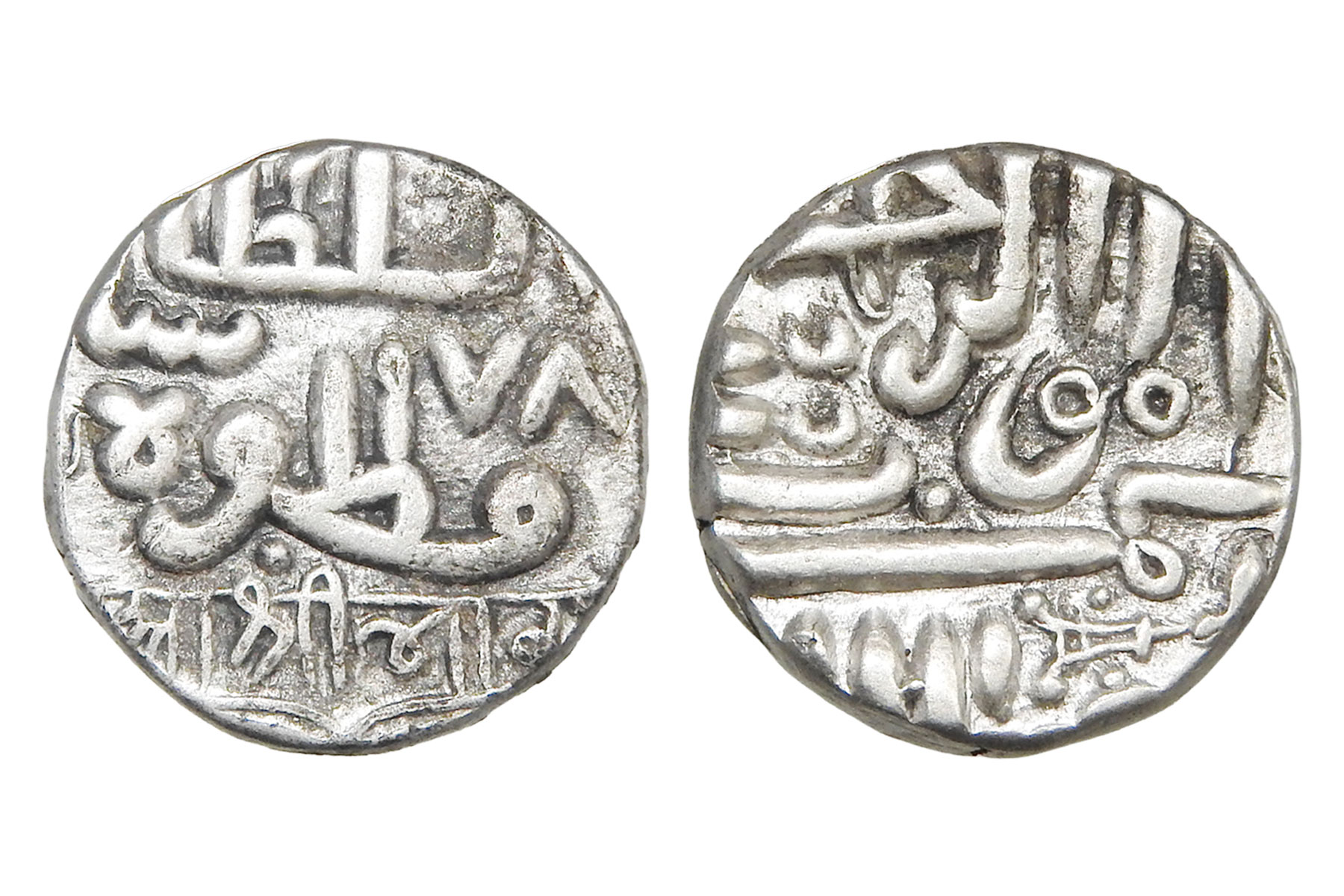 Kutch State, Bharmal Ji I(c. 1586-1632CE), Silver Kori, 4.80grms, Frozen date AH987, Obv. Nagari legend Rao Sri Bharaji, Very Fine+, Scarce early issue. Bharmalji I was a Jadeja ruler of Kutch State, credited with consolidating authority after periods of instability. He strengthened internal administration, supported trade through Kutch’s ports, and maintained relations with neighboring Rajput and Mughal powers. His reign laid early foundations for Jadeja rule in Kutch, balancing regional autonomy with pragmatic diplomacy in western India.