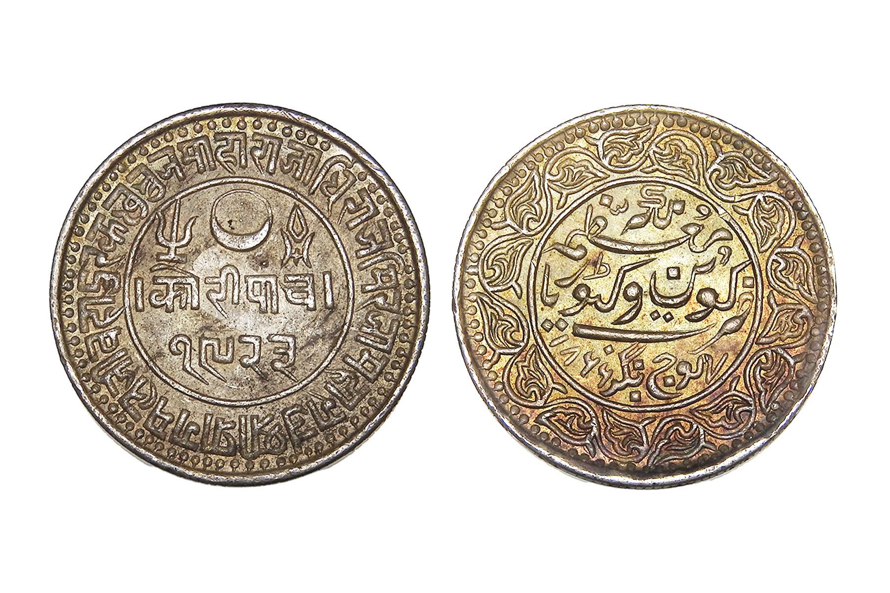 Kutch State, Pragmalji II(C. 1860-1875CE), Silver 5 Kori, 13.90grms, Issued in the name of British Monarch- Victoria Queen, 1868AD/1923VS, Minted at Bhuj, Extra Fine+, Very Scarce. Pragmalji II was a Jadeja ruler of Kutch State, remembered primarily for his architectural patronage. He commissioned the grand Prag Mahal at Bhuj, symbolizing royal prestige and European influence. His reign operated under British suzerainty and was marked by administrative continuity rather than major conflicts. Pragmalji II’s legacy lies chiefly in monumental construction and cultural expression rather than military expansion