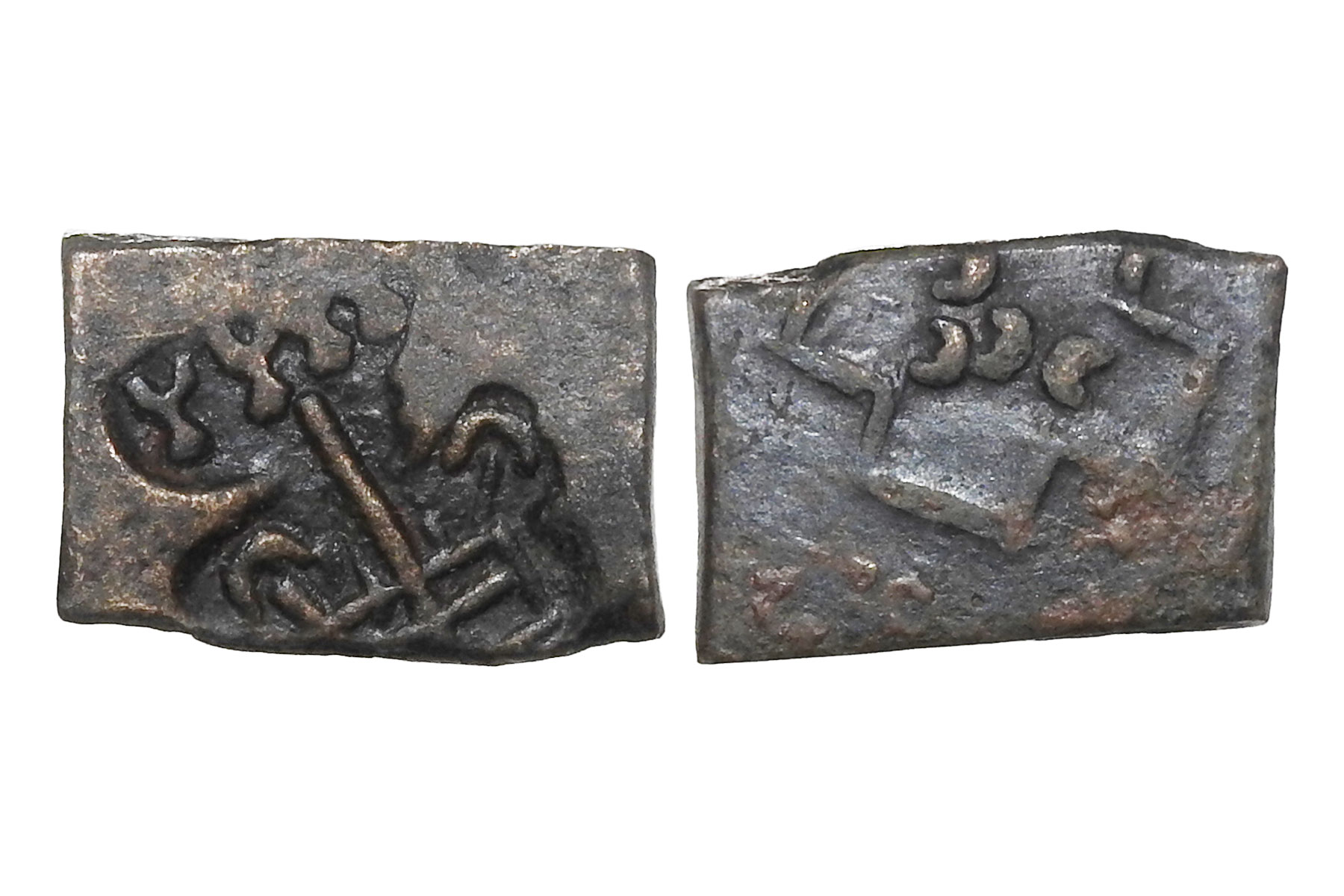 Anga Janapadha (c.400-300 BC), Copper Karshapana, 10.00 grms, Symbols- Sun & 6 armed symbol visible with some other symbols on both obverse and reverse, Very Scarce, Very Rare The Anga Janapada was one of the sixteen Mahajanapadas of ancient India, located in present-day eastern Bihar and parts of West Bengal, with its capital at Champa on the Ganga river. Anga was an important centre of trade and commerce and maintained strong maritime and riverine connections. It was later conquered and annexed by Magadha during the reign of King Bimbisara, becoming part of the Magadhan state