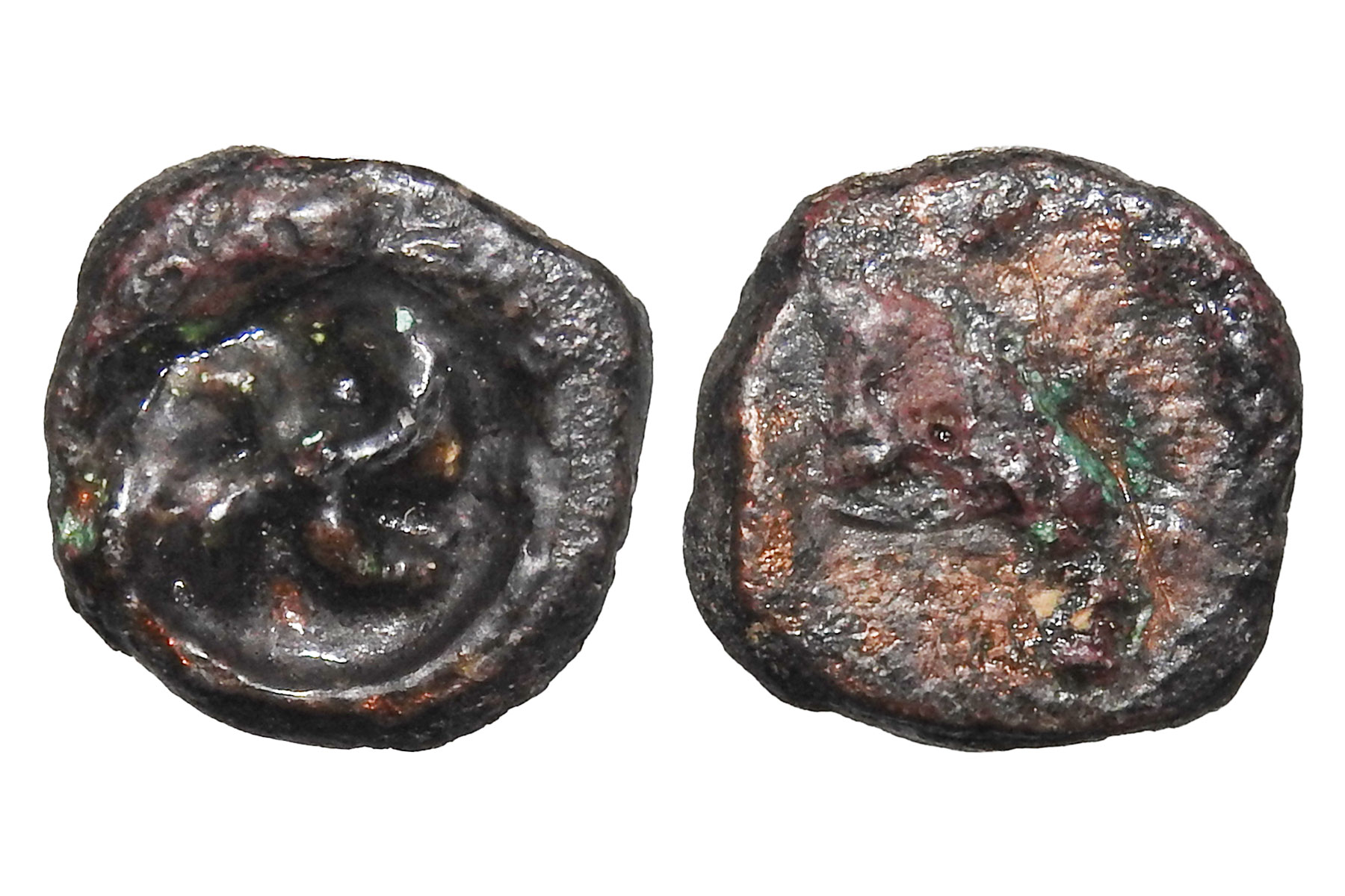 Post Mauryan Uninscribed Coinage,(c.100AD) Narmada Valley/ Khandesh Region, Copper Unit, 7.50grms, Obv. Tree in Railing with taurine instead on leaves, Rev. Hollow cross with 3 arched hill within, Unlisted type and unlisted tree symbol, Almost uncirculated condition, Appearing first time in any auction or public sale, Very Rare